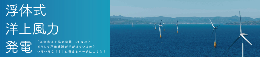 五島市と五島フローティングウィンドパワー合同会社(戸田建設の100%子会社)は、長崎県五島市崎山漁港の沖合において、2016年3月に国内初となる浮体式洋上風力発電設備を実用化し、商用運転を継続しています。